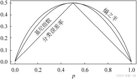 假如是二分类: G i n i ( p ) = 2 p ( 1 − p ) Gini(p)=2p(1-p) Gini(p)=2p(1−p)