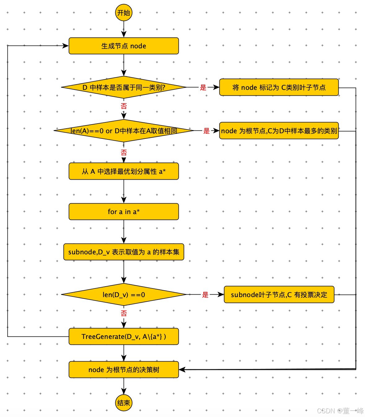 决议树的生成是一个递归过程,递归选择最优特性,并根据该特性对训练数据进行划分,使每个子数集有一个最好的分类。
