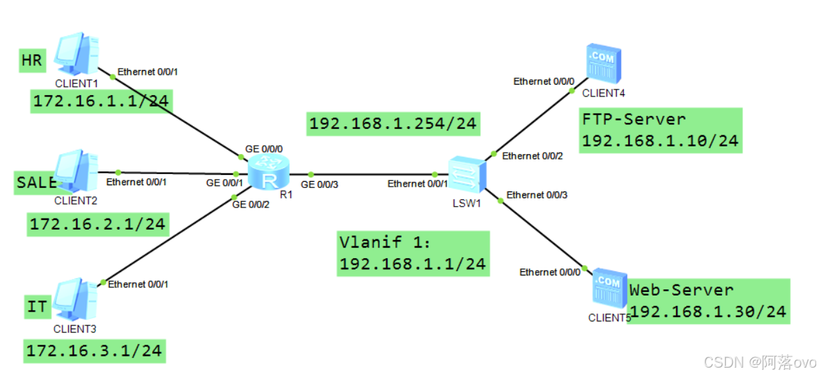 ④答应PC1访问FTP,PC2PC3访问WEB,不答应PC1访问WEB,PC2PC3访问FTP