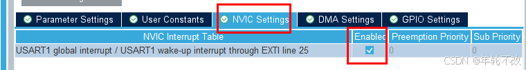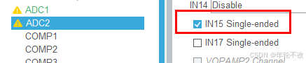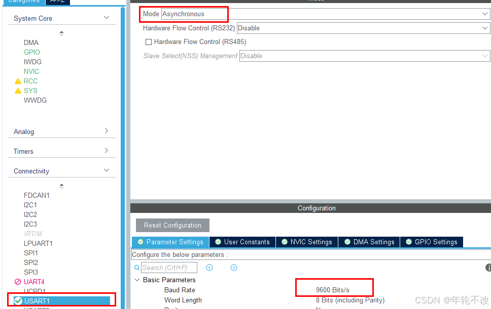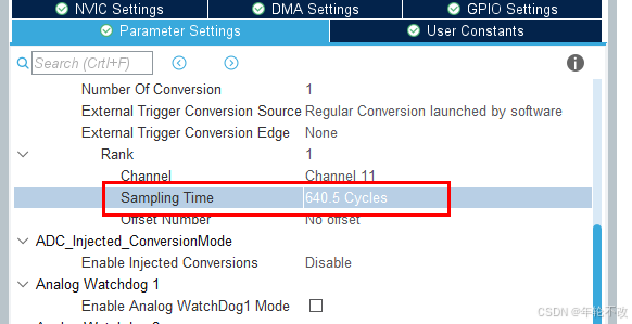 设置MODE为异步通信(Asynchronous) 修改波特率9600(根据题目修改) NVIC Settings一栏使能继承制止 4. ADC