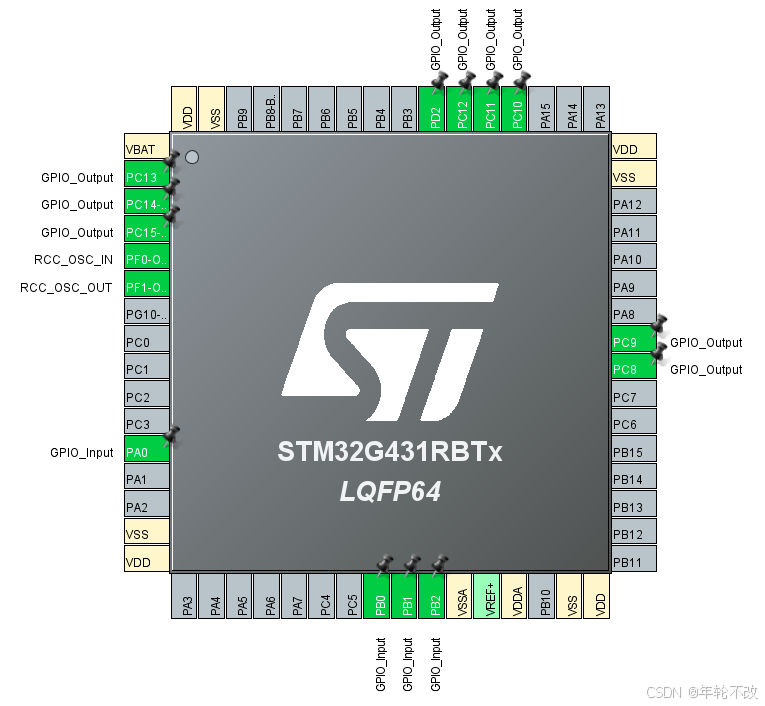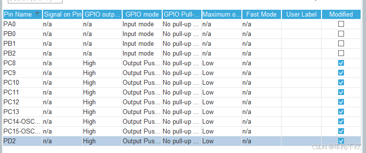 将 PB0,PB1,PB2,PA0 设置为 输入。