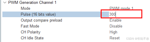 TIM3的占空比设置成30%,则脉冲就设置成300