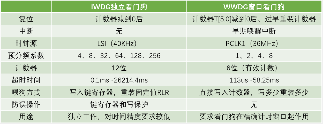 4)IWDG和WWDG对比