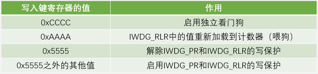 1)IWDG键寄存器