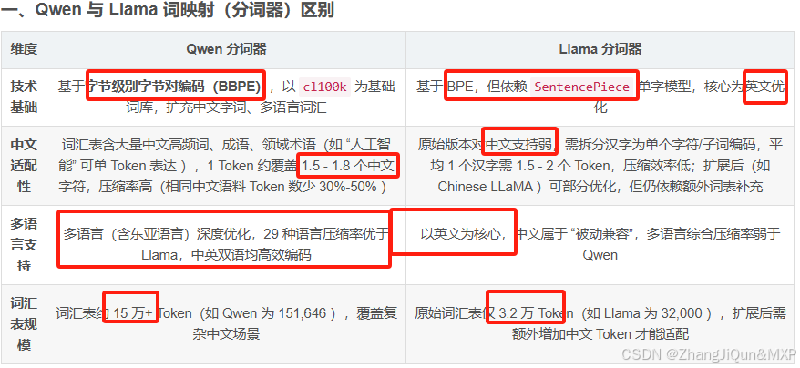 一、Qwen 与 Llama 词映射(分词器)区别