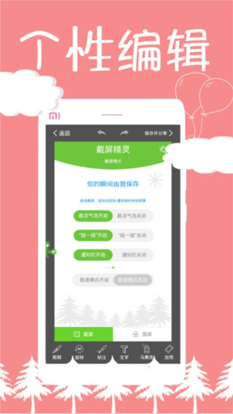 截屏精灵支持热门机型免Root普通截屏,截图方式多样,独家滚动截屏功能满意您在长屏截图的需求。图片编辑功能简单易用,满意了对截图及本舆图片的日常编辑需。