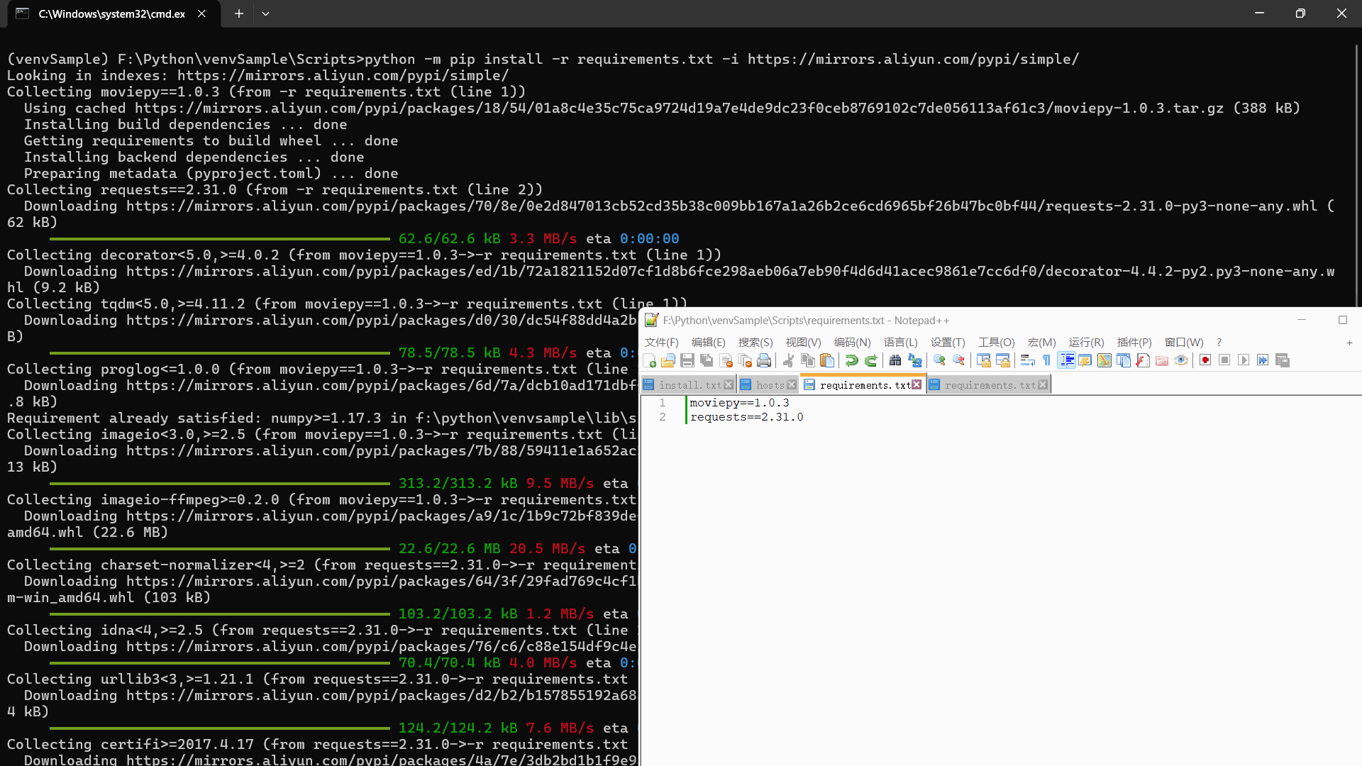 - # 好比pip install moviepy==1.0.3 -i https://mirrors.aliyun.com/pypi/simple/