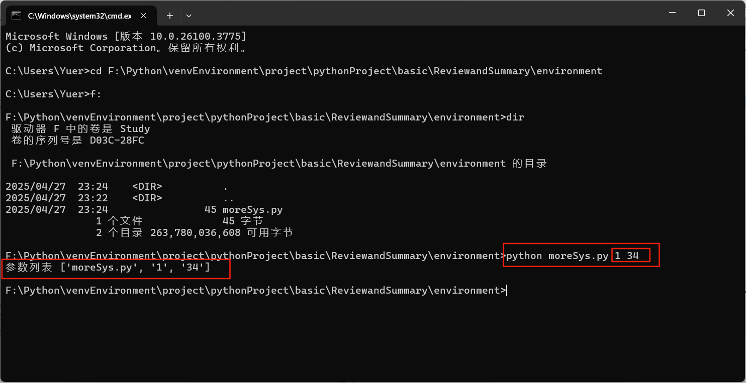 - 脚本内接收参数:在moreSys.py中使用sys.argv获取参数列表: