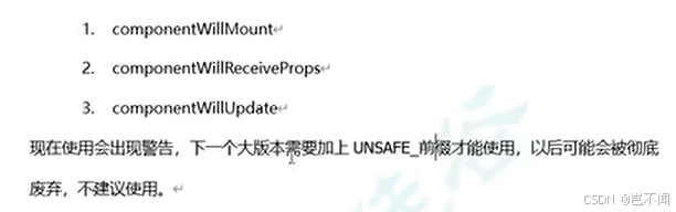 componentWillMount,componentWillReceiveProps,componentWillUpdate,在新的react17上中要加前缀UNSAFE。