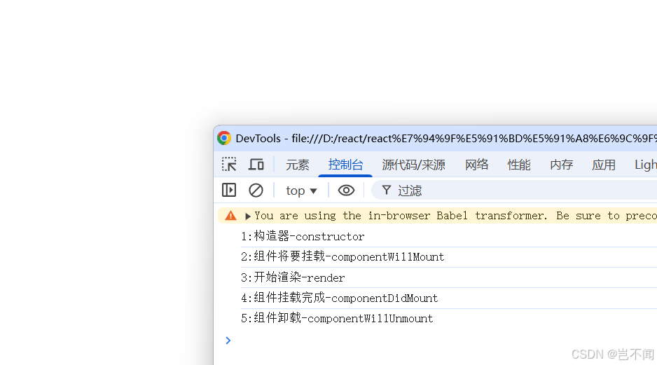 整体代码- <!DOCTYPE html><html lang="en"><head> <meta charset="UTF-8"> <meta http-equiv="X-UA-Compatible" content="IE=edge"> <meta name="viewport" content="width=device-width, initial-scale=1.0"> <title>Hello,React生命周期(旧)</title></head><body> <!-- 容器 --> <div id="test"></div> <!-- {/* // 引入 React焦点库 */} --> <script src="https://unpkg.com/react@16/umd/react.production.min.js"></script> <!-- {/* // 引入 react-dom 用于支持 react 操纵 DOM */} --> <script src="https://unpkg.com/react-dom@16/umd/react-dom.production.min.js"></script> <!-- {/* // 引入 babel:1. ES6 ==> ES5 2. jsx ==> js */} --> <script src="https://unpkg.com/babel-standalone@6/babel.min.js"></script> <!-- {/* // 引入 JSX 语法 */} --> <script type="text/babel"> // 1. 创建组件 class Count extends React.Component {