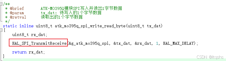 在使用HAL库时,不必这么贫困,HAL库都帮我们封装好了,直接使用下面两个SPI的发送和吸收函数接口。