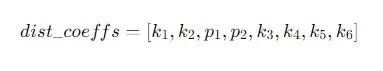 示例:- dist_coeffs = [0.1, -0.25, 0.001, 0.002, 0.03]
