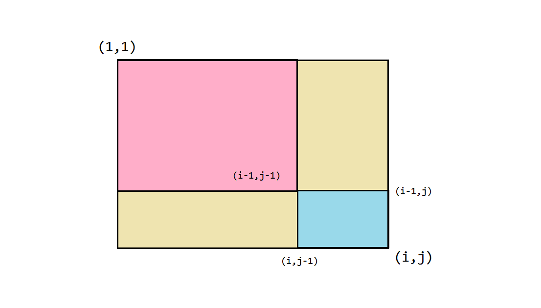 preSum[ i ][ j ] = preSum[ i-1 ][ j ] + preSum[ i ][ j-1 ] + nums[ i ][ j ] - preSum[ i-1 ][ j-1 ]