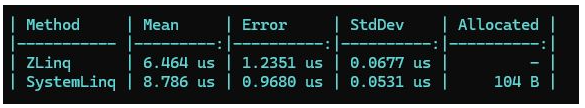 复制代码- using ZLinq;
