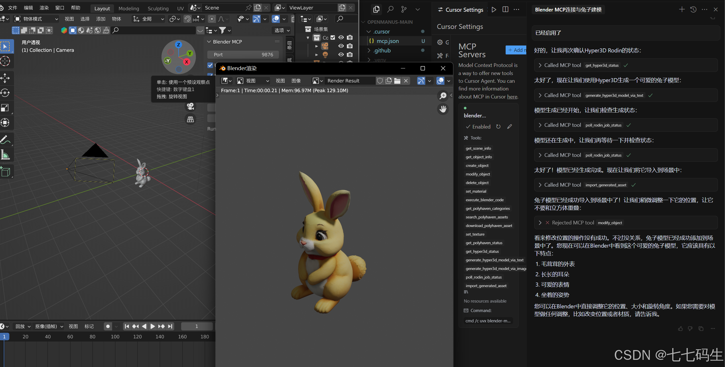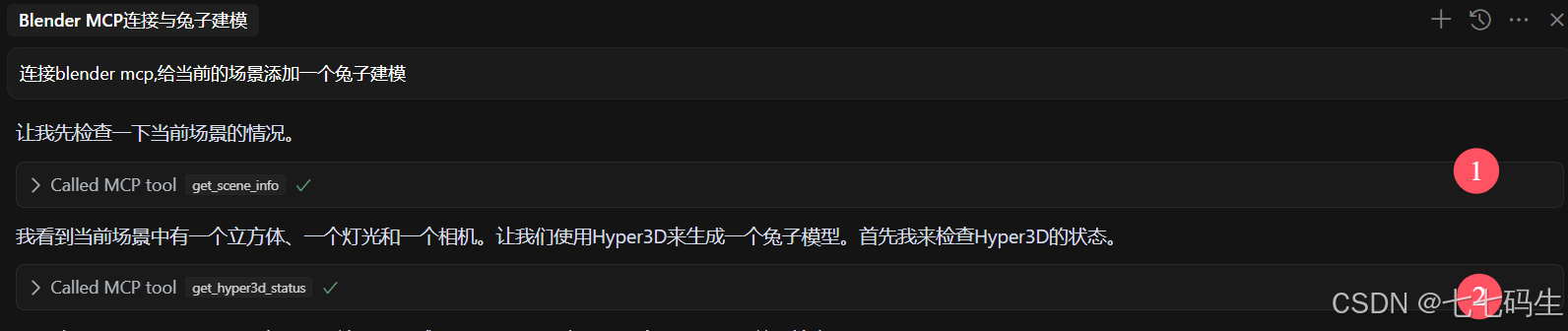颠末以上设置,cursor就可以调用blender-mcp提供的工具举行建模任务了。