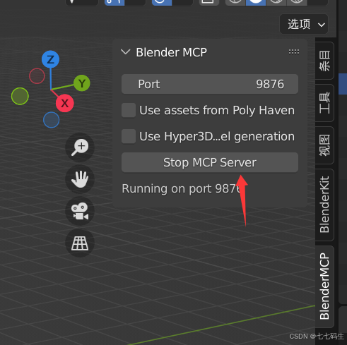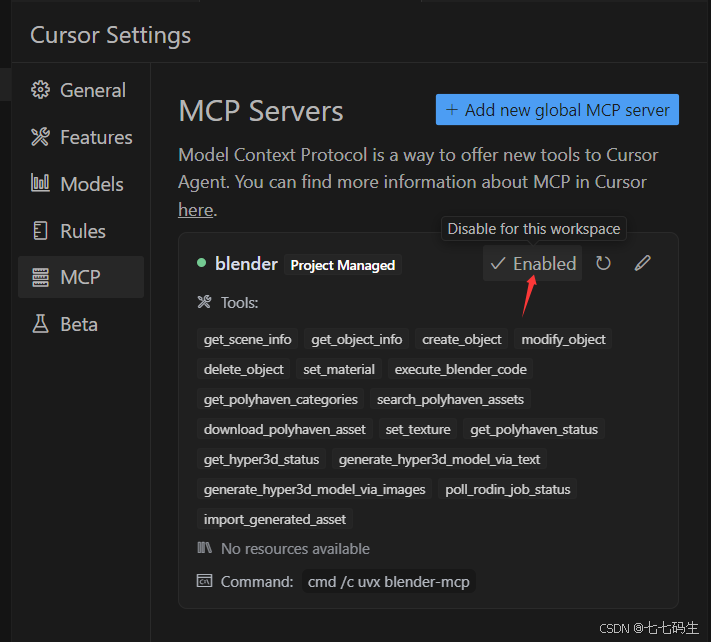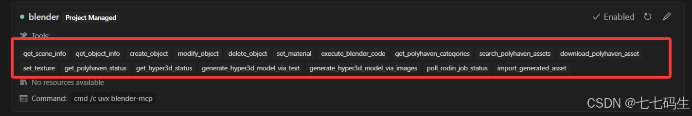 复制代码 设置好之后可以回到MCP设置,可以望见已经有blender项,可以设置启用和禁用