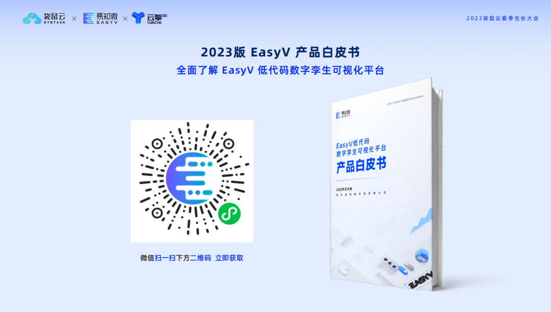 在“赋能”方面,EasyV空间协作体系极大地提升企业客户在可视化或数字孪生项目上的体系化管理能力,为给用户提供一个更稳定、便捷、顺畅的应用演示环境,协助企业构建可视化业务系统,EasyV「智能演播模式」以及数据门户2.0也即将全新上线。