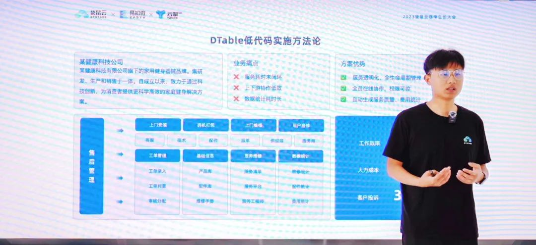“成交的结束,意味着客户成功的开始。” 如今,售后服务对于一家企业愈加重要,易知微数字化应用平台产品专家林欣通过一台跑步机的维修故事,从消费者视角、企业视角展现了企业售后服务常见问题,并分享了DTable低代码实施方法论、售后服务解决方案等方面内容。