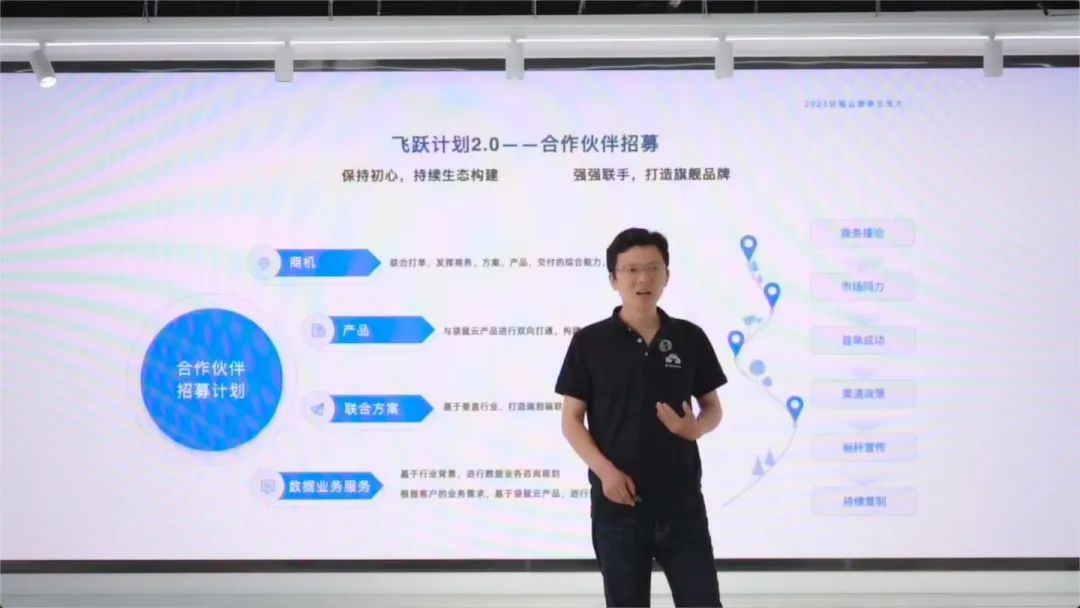生态合作伙伴计划是本次大会的又一重头戏,袋鼠云生态总经理闵佳为大家揭晓飞跃计划2.0的具体计划和未来规划。袋鼠云将继续加大在合作伙伴上的资源投入,面向全球招募各种类型的合作伙伴,打造“能力共建、利益共享、风险共担”的强大