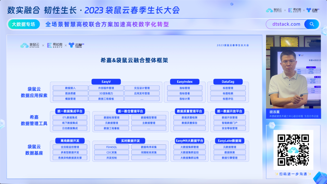 希嘉数据技术能力中心副总经理、生态合作总监胡添翼带来分享,希嘉与袋鼠云共创