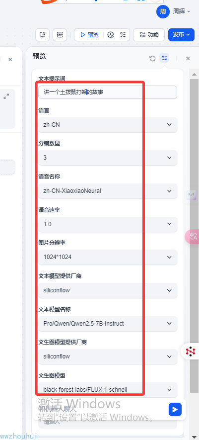 我们首选须要把服务端代码启动起来,具体步调可以看服务端代码 启动服务(上面提到),接下来我们点击工作流右上角预览,填写相应的值。