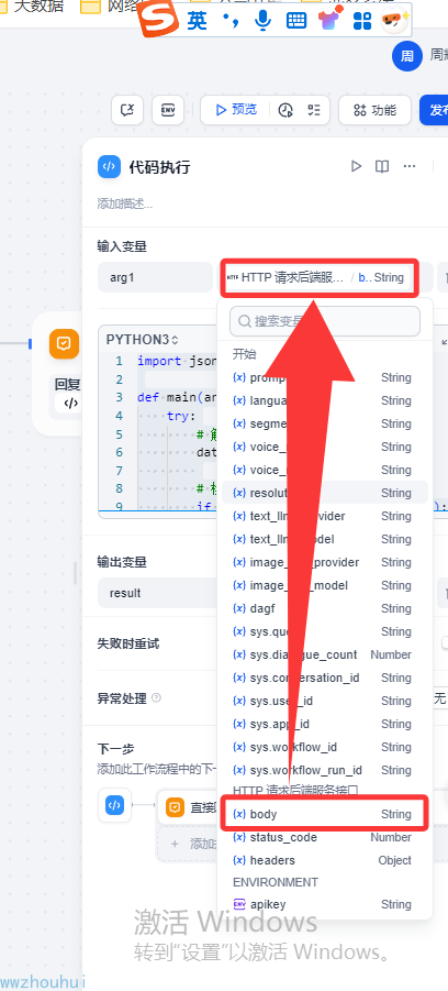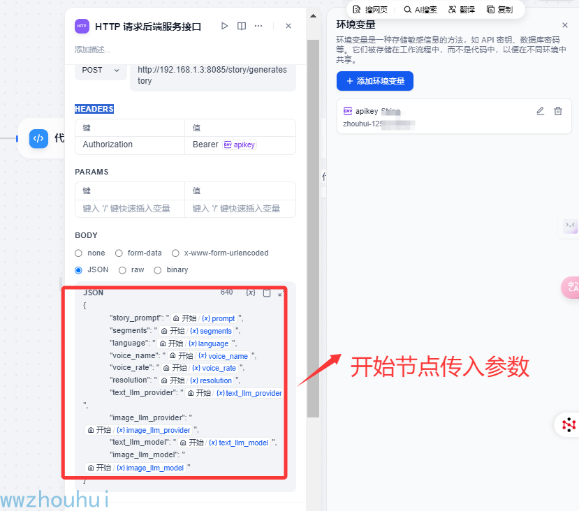 body部门传入的参数是一个json格式数据,数据都是开始节点传入的参数