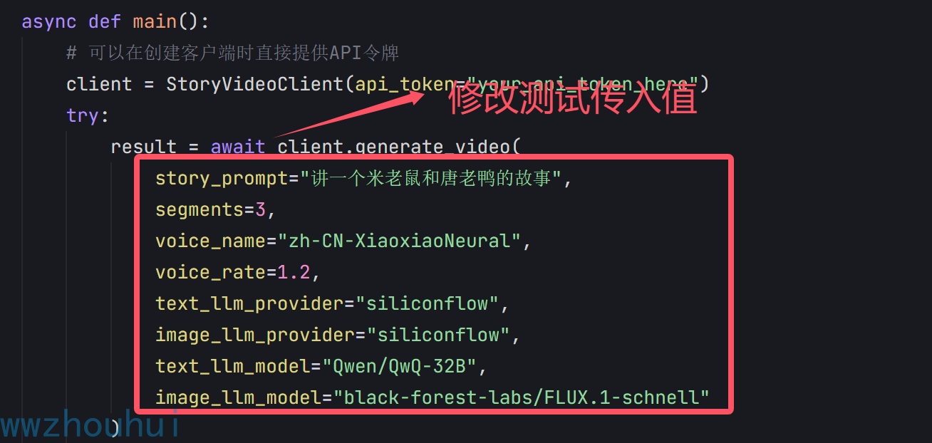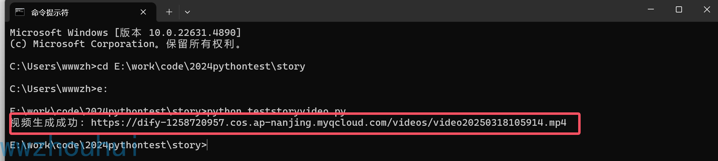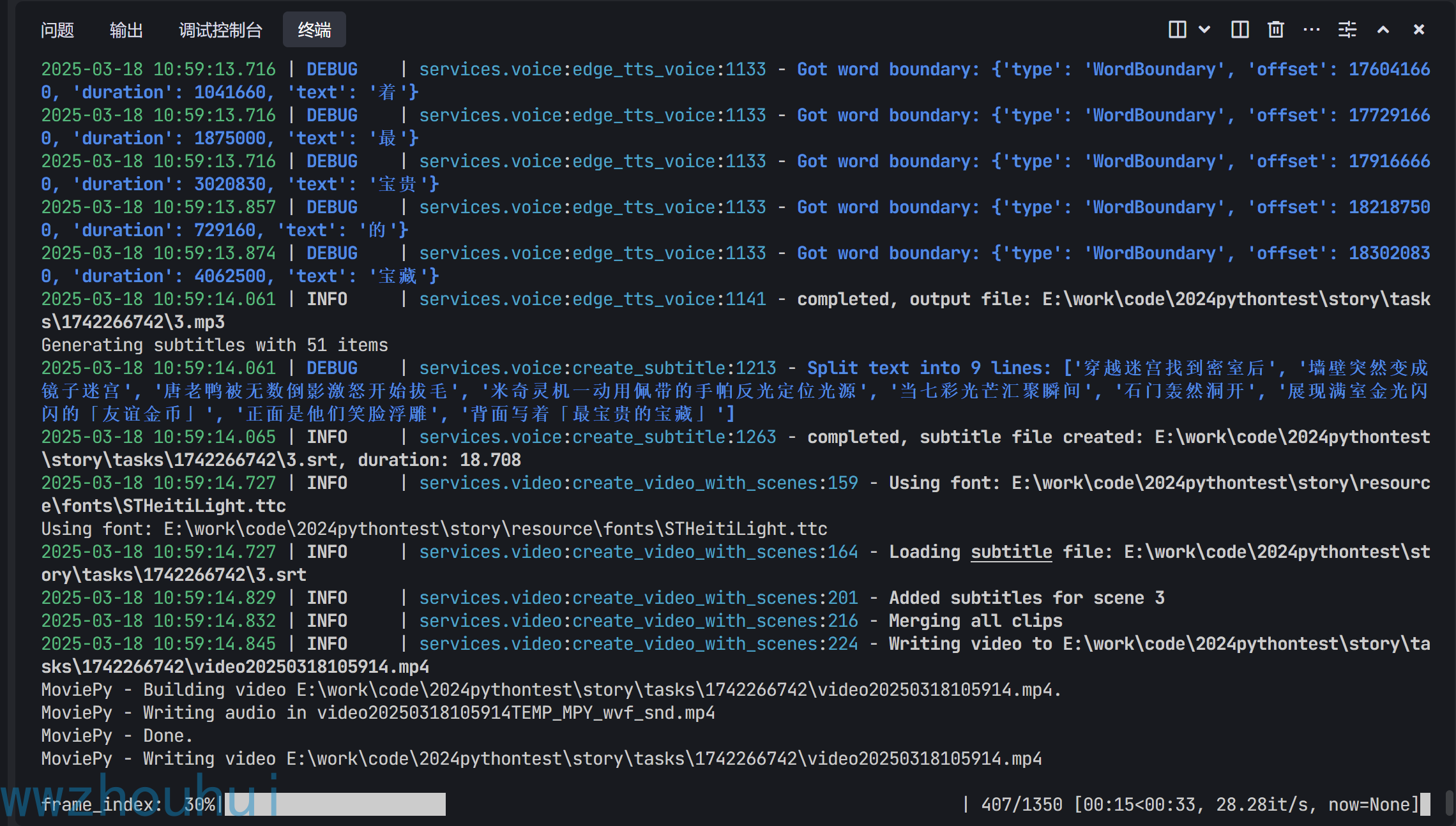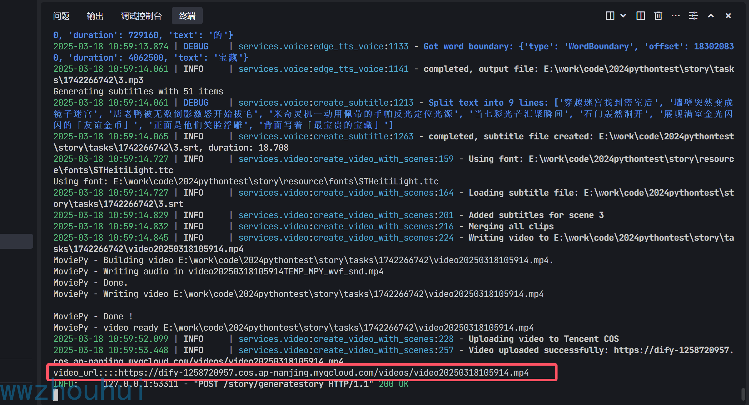服务端启动后我们使用teststoryvideo.py 可以对服务端哀求发起测试 天生短视频