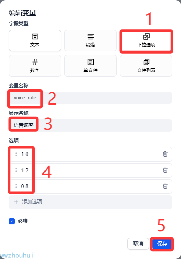 voice_rate:语音速率 这个就是天生的声音的语速,现在我们提供 1.0, 0.8 1.2 三中语速。固然你也可以在上面添加。