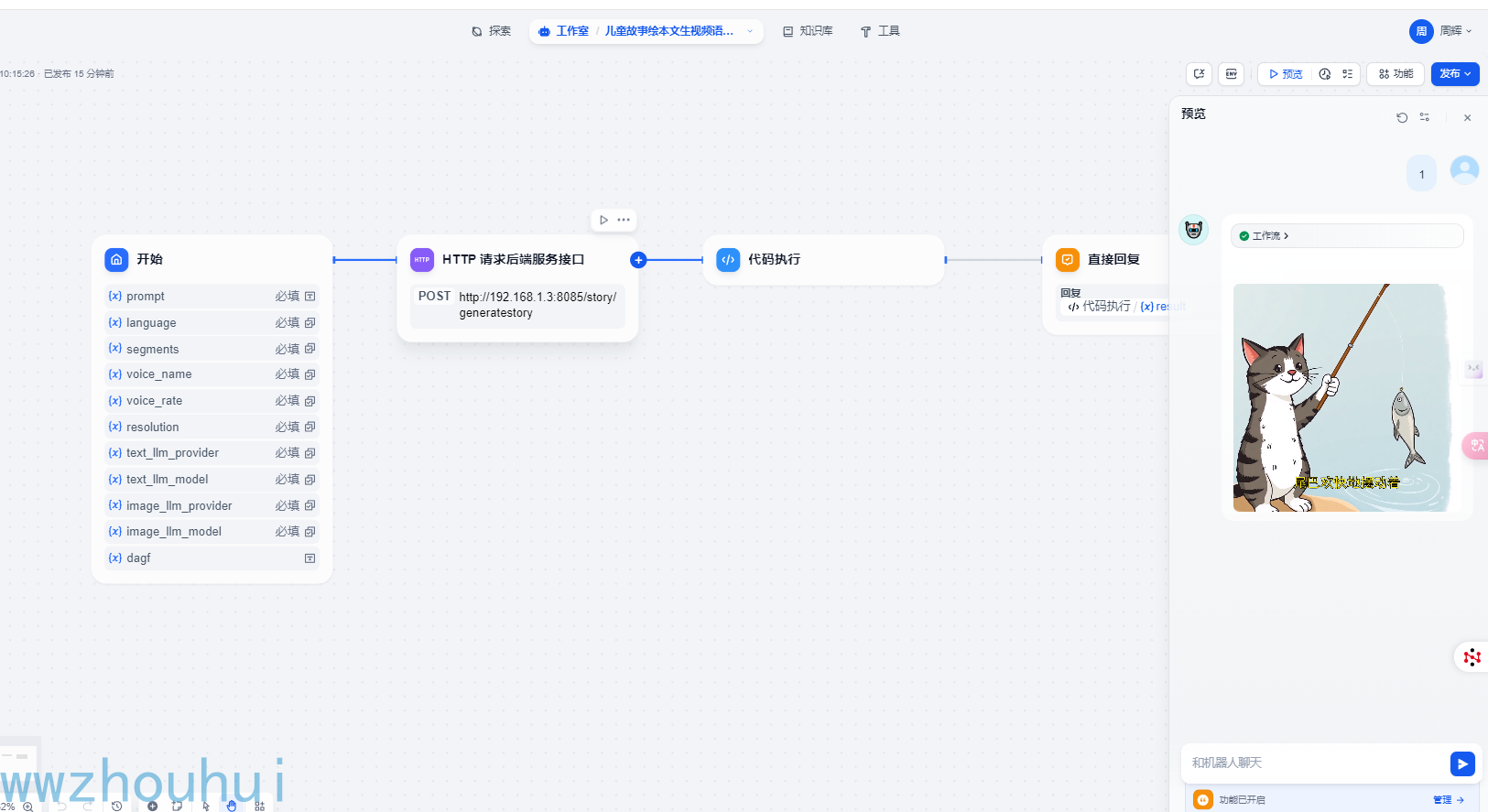 上面是一个合成后的儿童故事绘本视频流,下面的是工作流的具体毕竟现。
