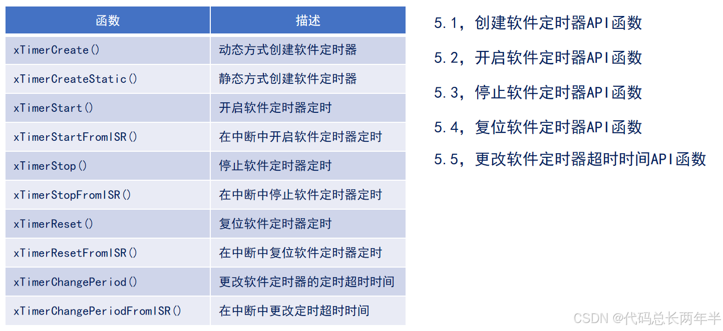 二、 FreeRTOS软件定时器相干API函数