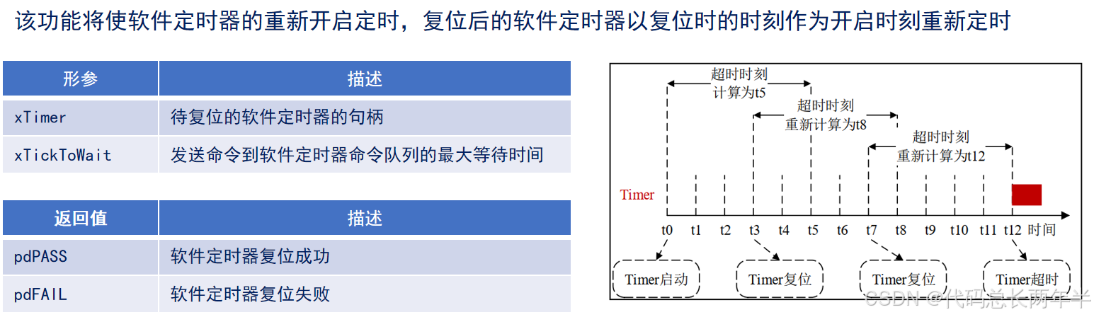 BaseType_t xTimerReset( TimerHandle_t xTimer,