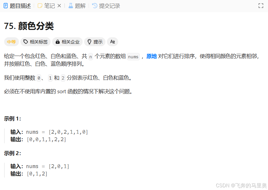 力扣算法Hot100——75. 颜色分类