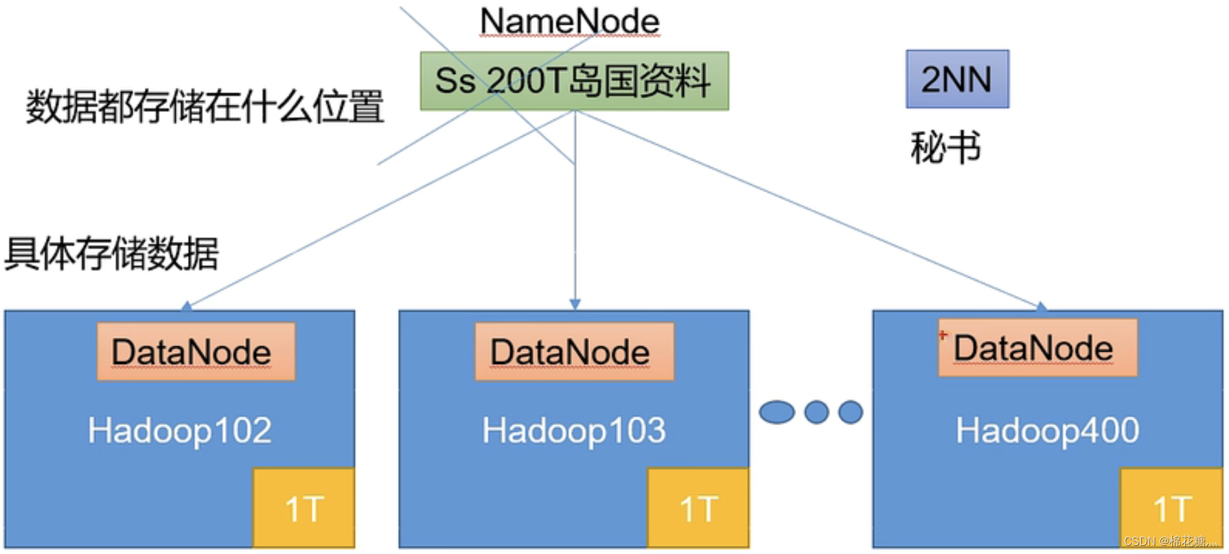 NameNode(nn):存储文件的元数据,如文件名,文件目录结构,文件属性(生成时间、副本数、 文件权限),以及每个文件的块列表和块所在的DataNode等。