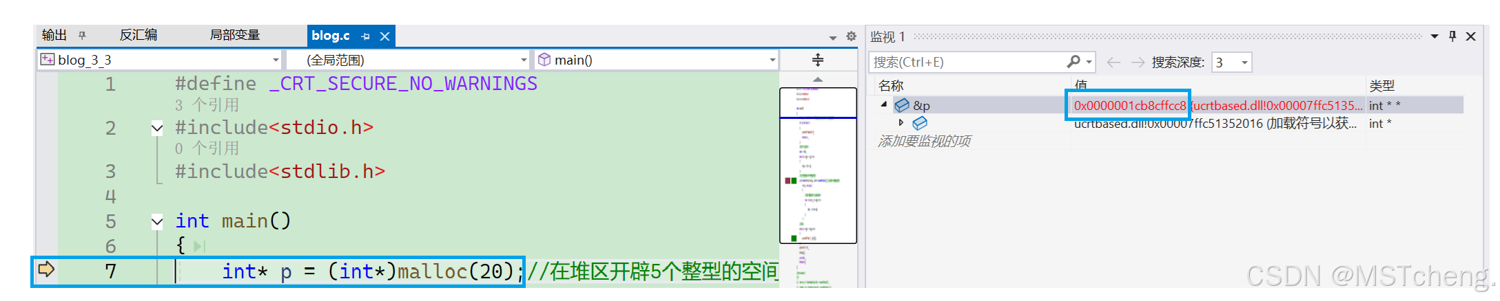 - int* p = (int*)malloc(20);//在堆区开辟5个整型的空间