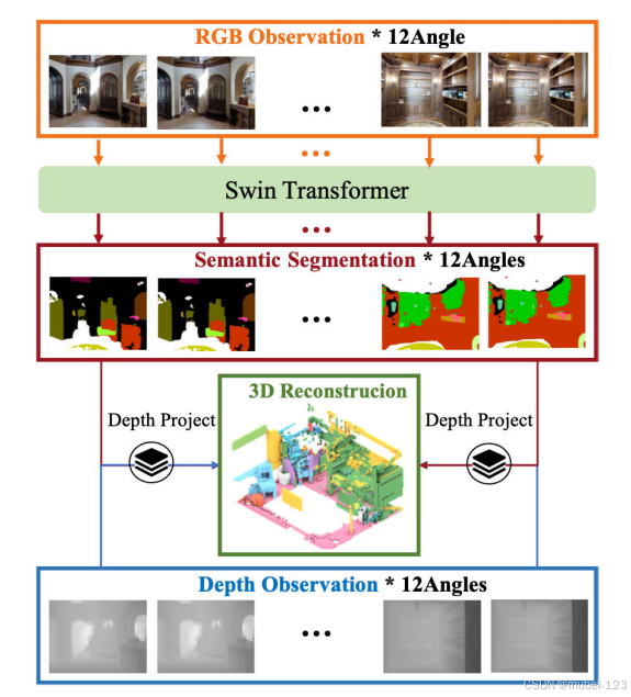 (1)图片输入:全景RGB-D图像(在实验过程中会将全景图拆分成12个差别角度的图片);