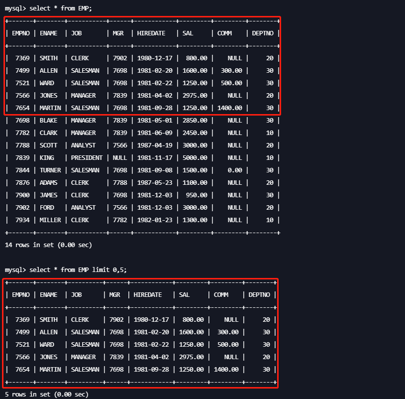 复制代码 从第一条记录开始显示,向后展示5条记录。
