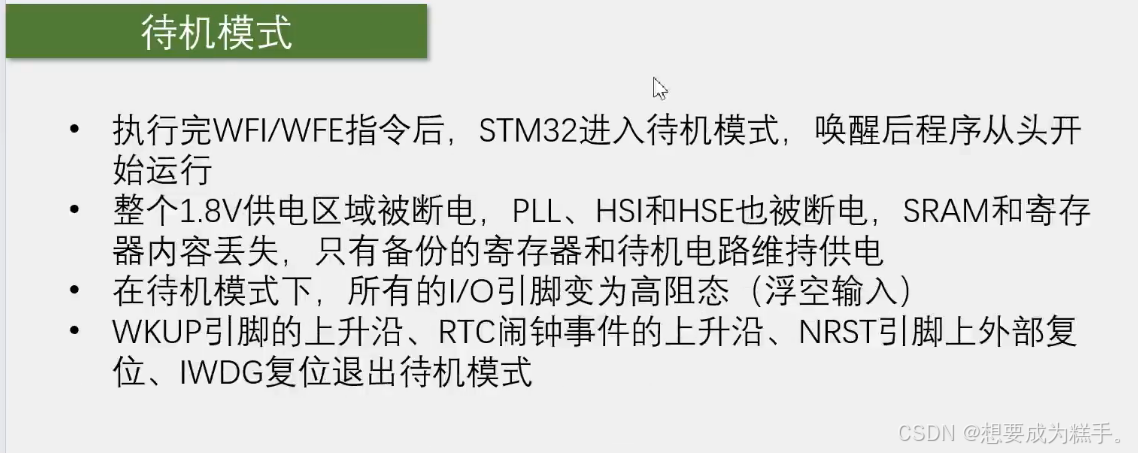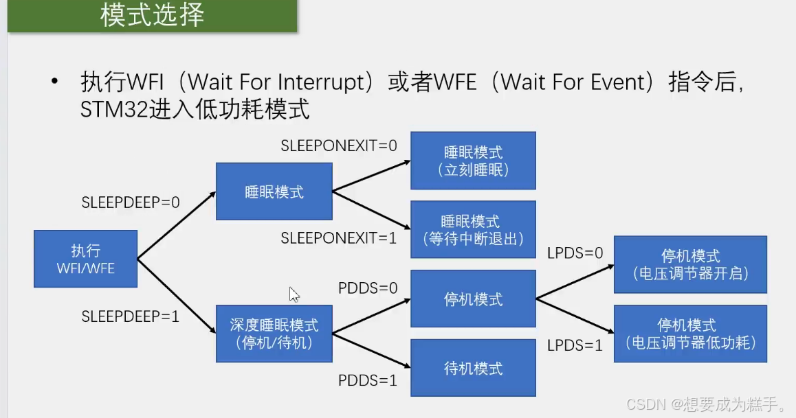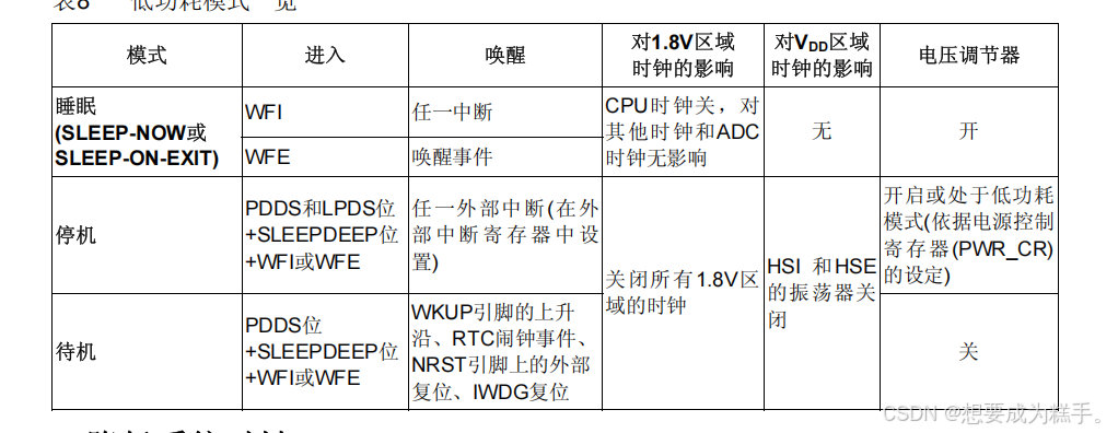 - 通过设置 PWR 寄存器,可以进入或退出这些模式。