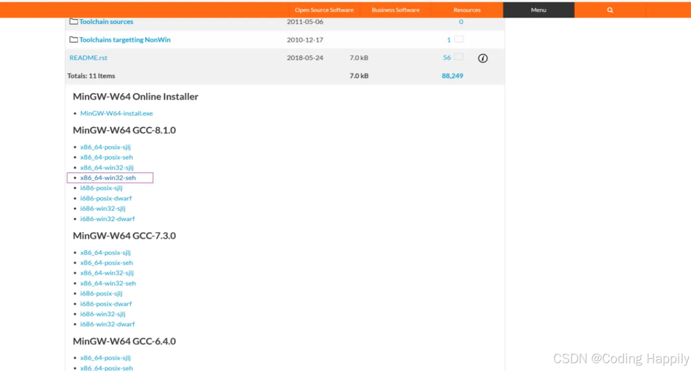 mingw官方下载网站(https://sourceforge.net/projects/mingw-w64/files/)更新之后,与网上大多数教程上写的界面差别了。
