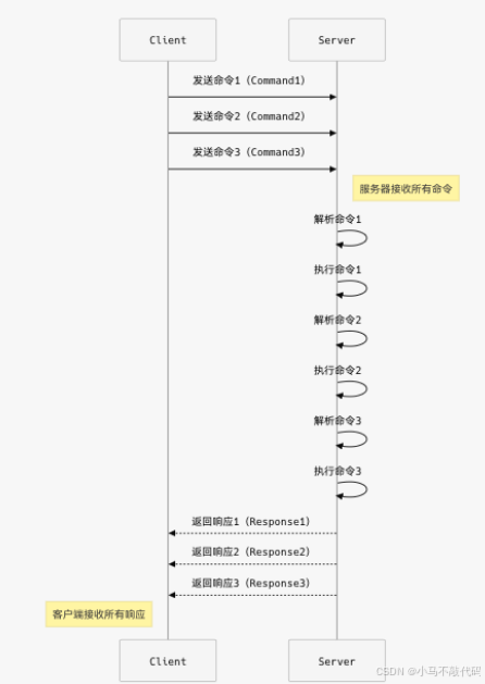 - 发送下令: 将打包好的哀求一次性发送给 Redis 服务器。