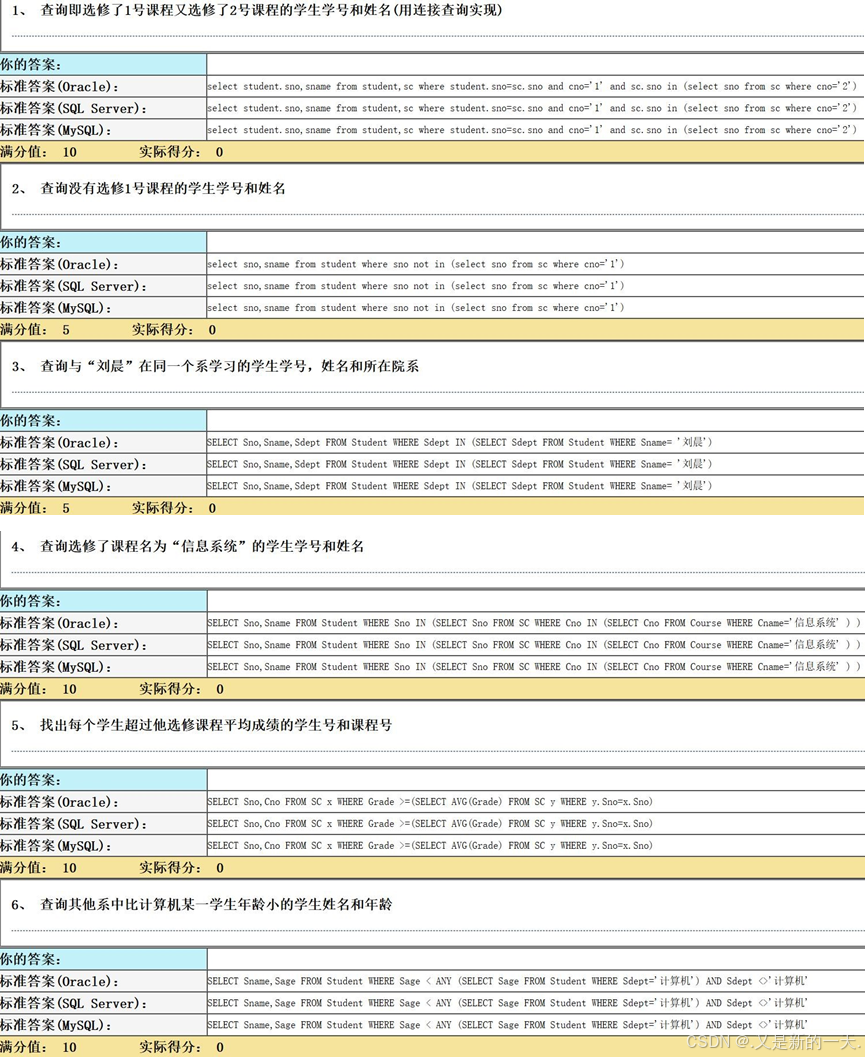 实验三:数据查询(嵌套、聚集)