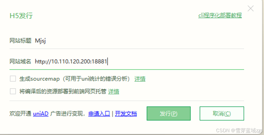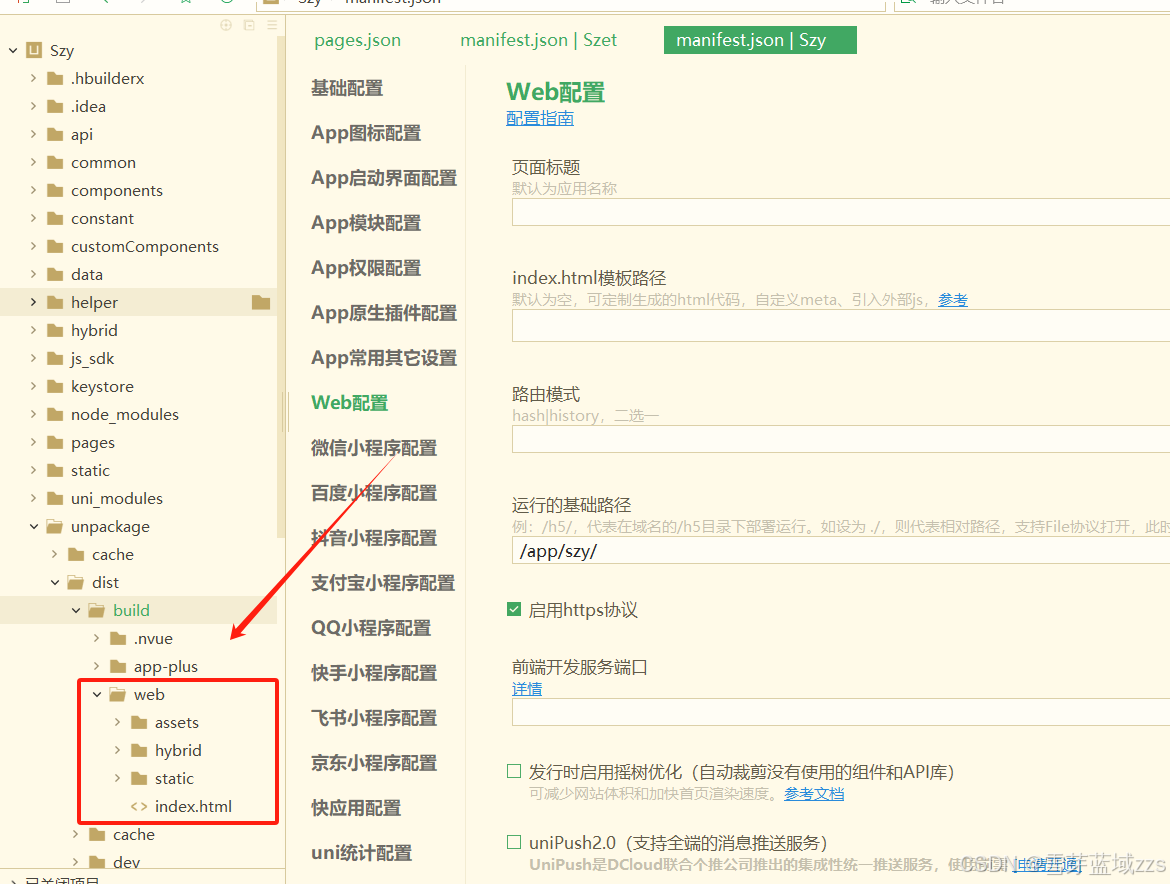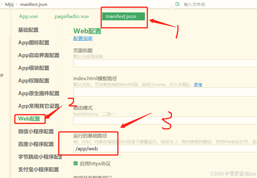 uni-app项目 – >manifest.json - > Web设置 - >运行的根本路径填写域名后的访问地点.(输入网址比方; http://10.210.120.100:1881/app/web)
