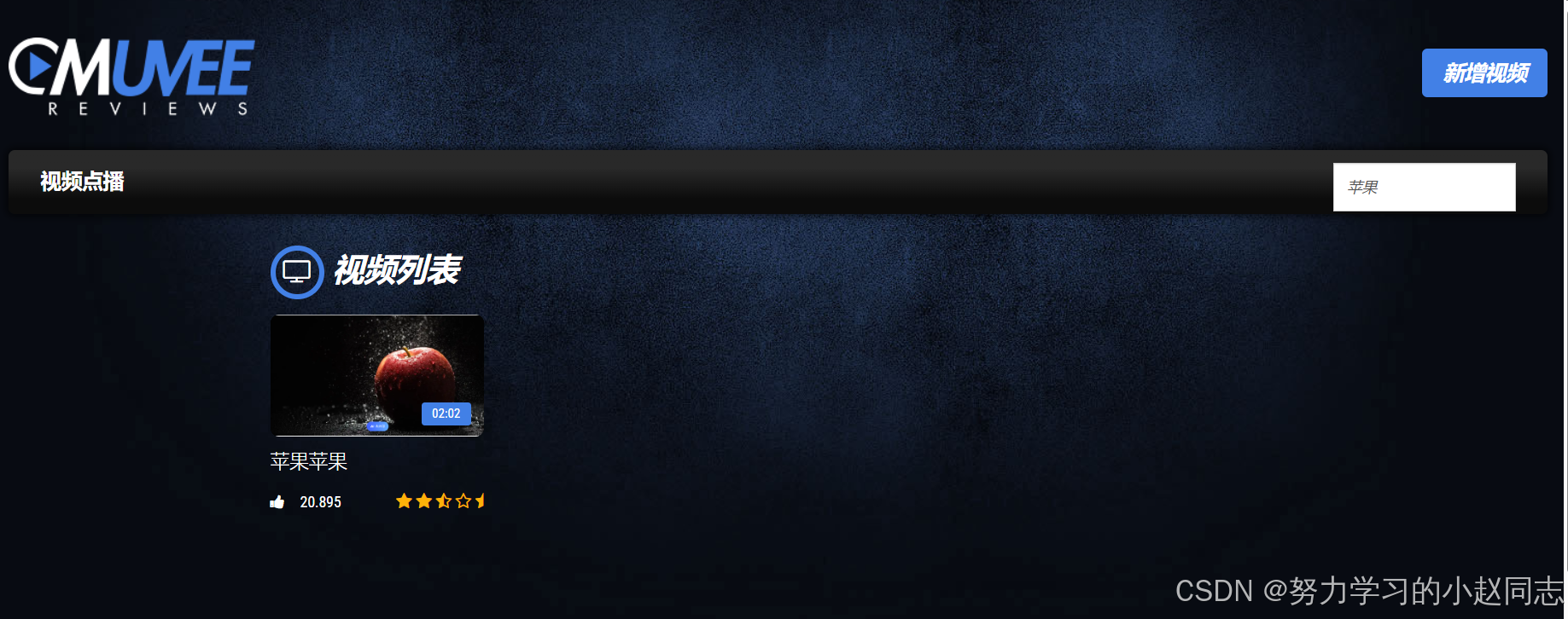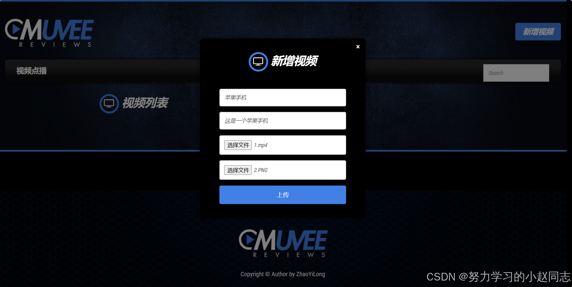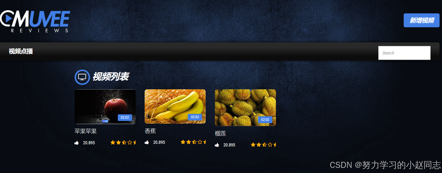 主界面告急 用于 视频展示、视频上传、视频搜索