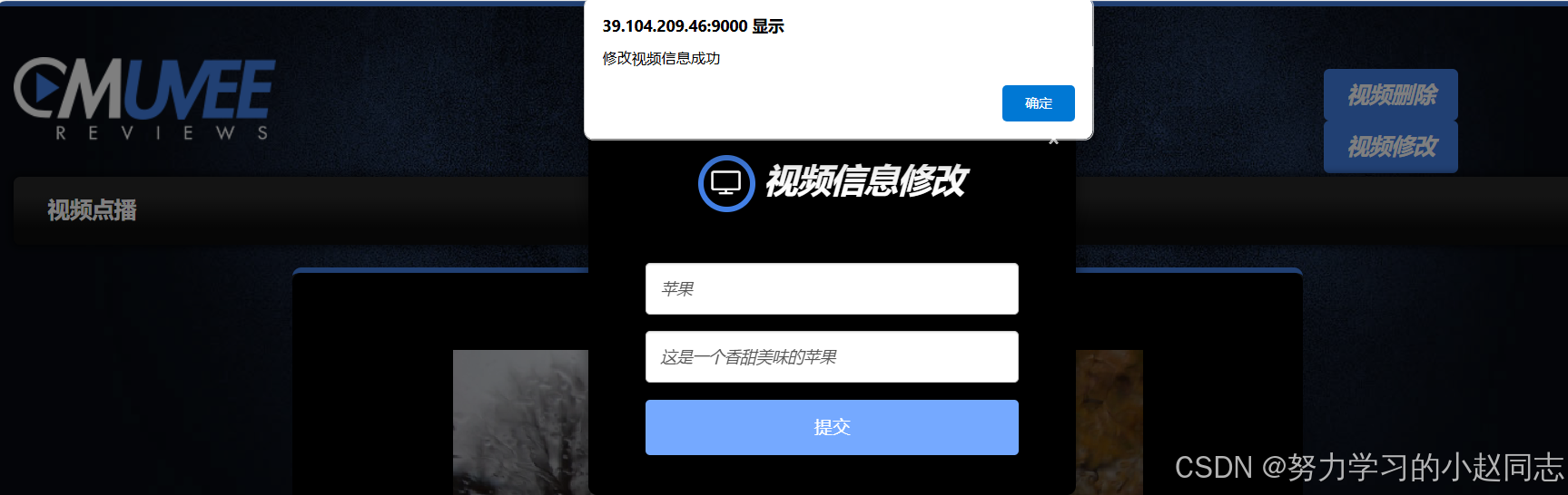 观看界面告急用于 视频观看、视频信息修改、视频删除