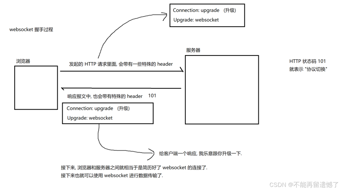 - Sec-WebSocket-Accept: xxxxxx。服务端与该客户端通讯的钥匙