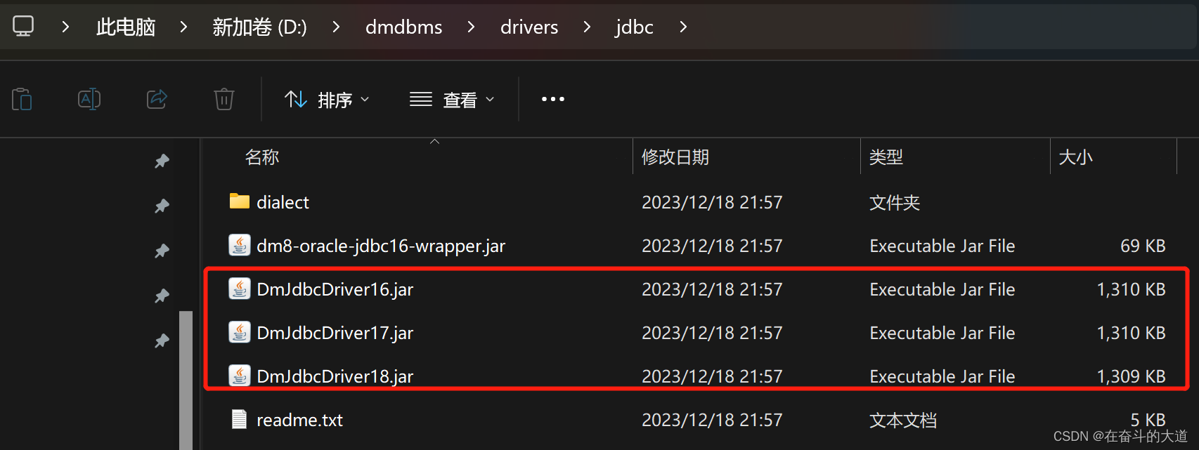 DM8 JDBC 驱动 jar 包在 DM 安装目次 /dmdbms/drivers/jdbc