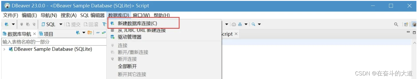 1.点击数据库>新建数据库毗连