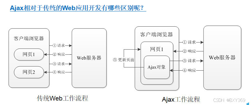 - 传统的网页(不使用 Ajax)如果需要更新内容,必须重载整个网页页面。