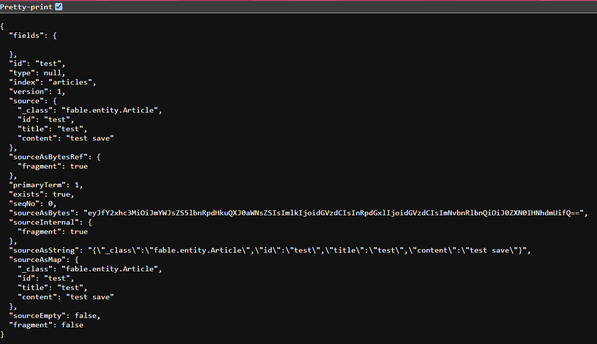- GetResponse<Article> response = elasticsearchClient.get(builder -> builder.index("articles").id("test"), Article.class);