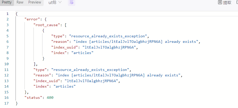 需要注意这里的文档实体类必须包含索引的全部字段,否则会报错无法解析