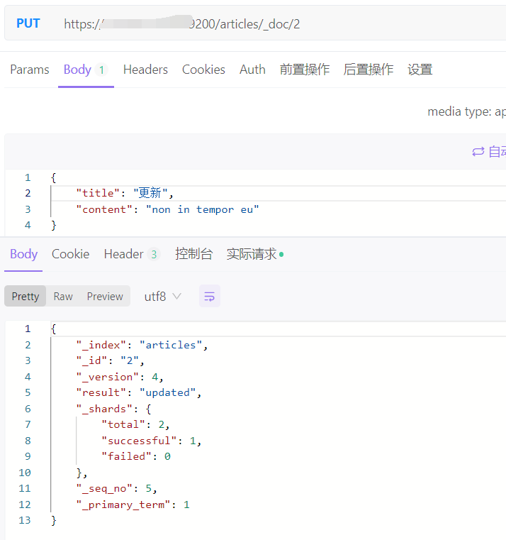 - /_doc/1 # 使用指定id,不存在创建,存在更新